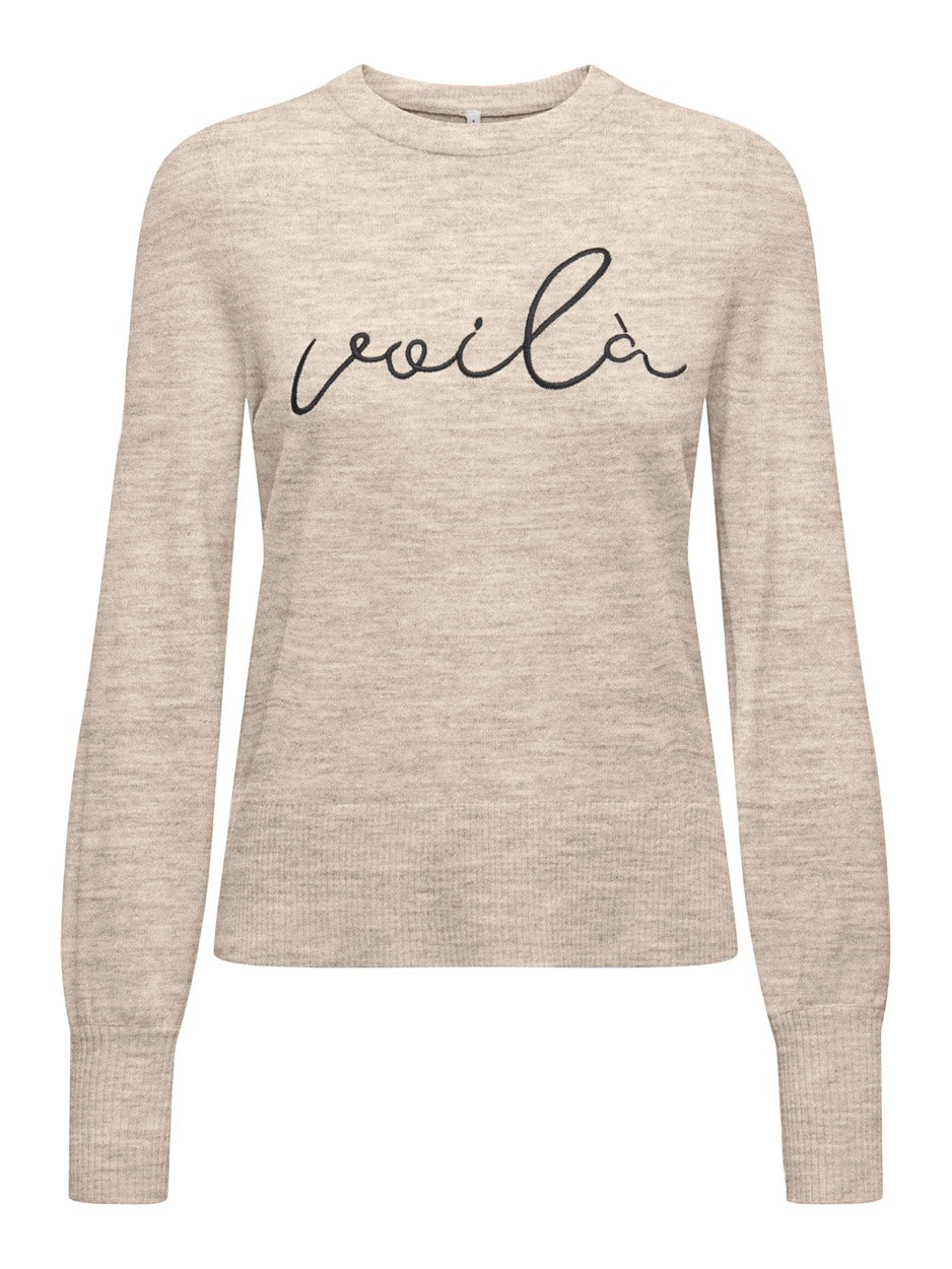Onlibi Ls Emb O-neck Cc Knt - Off-white